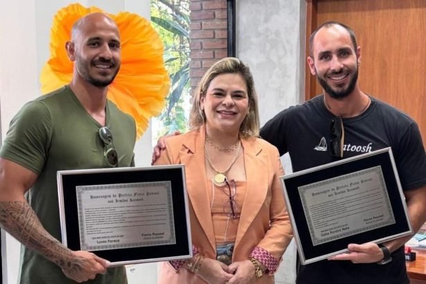 Prefeita de Ubatuba entrega homenagem aos irmãos Katoosh após volta ao mundo